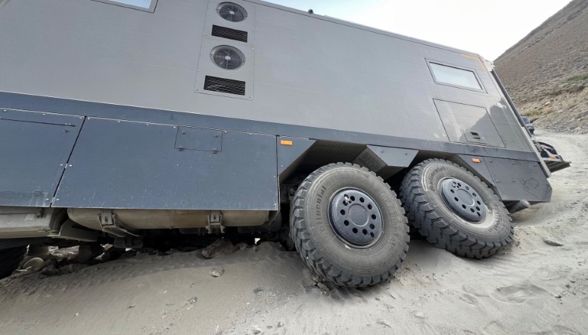 The weight also means they sink real easy, if you have a great big 8×8 then they also sink, but the word stuck is on another level, I have seen six Kamaz 8×8 service trucks stuck in the Mauritanian desert up to there axles, took them 7 days to get themselves out and I have seen a 8×8 Mercedes fall over in a flat wadi when it hit a little soft spot !!